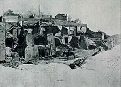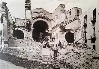 The quake was felt with a maximum intensity of XI around a 3 km2 (1.2 sq mi) area, or 1.5 km (0.93 mi) from the epicenter, in the northern part of Ischia. Unrepaired structures that were previously damaged by the 1881 earthquake were totally destroyed.[10] The earthquake was most devastating in the northern part of the city of Casamicciola, collapsing or seriously damaging many homes. Private buildings, hotels, churches, and country houses were among the many infrastructures destroyed by the earthquake. Damage was reported in every part of the island, with only a handful of buildings left untouched by the quake.[2]