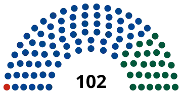 All 102 seats in the Folketing 52 seats needed for a majority | |||||||||||||||||||||||||