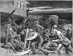 The Great Chatsworth train wreck was a major rail accident that occurred late on the night of August 10, 1887, 3 miles (5 km) east of Chatsworth, Illinois, in the United States. A Toledo, Peoria and Western Railroad (TP&W) train bound for Niagara Falls crossed over a trestle, weakened earlier in the day by a fire, causing it to collapse. In 2007, staff of the McLean County Museum of History wrote that "the Chatsworth Train Wreck probably ranks as the second- or third-deadliest U.S rail accident in the 19th century."[2]
