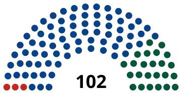 All 102 seats in the Folketing 52 seats needed for a majority |
