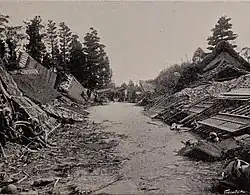 The 1891 Mino–Owari earthquake (美濃・尾張地震, Mino-Owari Jishin) struck the Japanese provinces of Mino and Owari (present-day Gifu Prefecture) in the Nōbi Plain in the early morning of October 28 with a surface-wave magnitude of 8.0 and moment magnitude of 7.5. The event, also referred to as the Nōbi earthquake (濃尾地震, Nōbi Jishin), the Great Gifu earthquake (岐阜大地震, Gifu Daijishin), or the Great Nōbi earthquake (濃尾大地震, Nōbi Daijishin), is the largest known inland earthquake to have occurred in the Japanese archipelago.