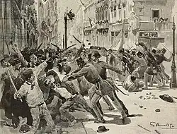 - August 23 – Start of a three day popular revolt in Naples incited by horse-cab drivers notoriously linked to the Camorra, who called for a strike against the agreement between the city administration and the Belgian tram company Société Anonyme des Tramways Provinciaux (it), which provides for the extension of the tramway line to other parts of the city.[10] The coachmen created riots and wreak havoc on the streets of Naples together with thousands of other demonstrators descending from the working-class neighbourhoods. Carriages that did not participate in the strike were attacked and a tram was burnt down. The police fired on the demonstrators, injuring some of them and killing a boy. His corpse is carried in a tumultuous procession and continuous clashes with the police, from San Carlo all'Arena to the Prefecture. The riot spreads, shops are attacked, shop windows smashed. Devastations multiply, but do not result in looting.[10]