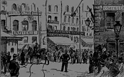 Shortly after, a mob of several hundred people formed in Place de la Bourse and converged on the cafe, with the French flag at its head, joining the already agitated group.[8] The French then attacked the cafe, forced their way in, and ransacked everything they could find.[8]