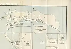 On 30 September 1899 the island of Ceram, Dutch East Indies, was struck by an Ms 7.8 earthquake which was accompanied by a 10-meter landslide-induced tsunami.[2] According to the Batavian Magnetic and Meteorological Observatory, the shock occurred at 01:42 AM Amahei local time.[3] The study about the quake and its effects was published by Dr. R. D. M. Verbeek in an article named Short Report about the earth- and sea-quake in Ceram, the 30th September 1899, which serves as the only extensive source on this earthquake.