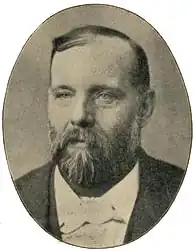 At the beginning of 1899, the two members of parliament for Oldham were Robert Ascroft and James Oswald. However, Oswald had been chronically ill for many months and had been absent from his Parliamentary duties and his constituency. He had indicated that he would not seek re-election and left a resignation note with the Conservative Party and instructed them to use it if they thought it to be expedient.[2] Ascroft was an active in Parliament but was struck down with pneumonia at his home in Croydon on 12 June, becoming partially unconscious.[3] Over the next few days, his condition did not improve,[4] and by 18 June there was said to be "very little hope".[5] He died on the afternoon of 19 June.[6]
