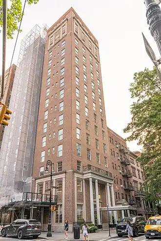 18 Gramercy Park is a 19-story residential building in Manhattan, New York City, United States. Built as a hotel in 1927 and designed by the architectural firm Murgatroyd & Ogden,[1] it was a women's temporary residence owned by The Salvation Army from 1963 to 2008. It was then known as the Parkside Evangeline.[2] In 2010, The Salvation Army sold the building to Eastgate Realty for US$60 million.[2][3] The investors were the Zeckendorf family and Israeli billionaire Eyal Ofer.[4][5]