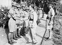 During the evacuation of the 4th Brigade, which took place from Sfakia on 30–31 May, the 18th Battalion formed a rearguard helping police and maintain order; it was the last battalion of the brigade taken off.[47] One of the battalion's platoons also acted as a bodyguard to the King of Greece during the battle and evacuation. The King subsequently conferred some of the men with Greek decorations.[48] Casualties during the fighting on Crete were heavy for the 18th Battalion, with 105 men killed or missing and 110 more taken prisoner.[49]