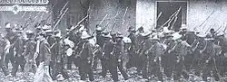 Despite the government's attempts to end the economic and political crisis, the situation only worsened, and in August 1899 the Conservative Party withdrew support for the Sanclemente government.[3] This situation provided the necessary pretext for the warmongering sector of the Liberal Party to start the Thousand Days' War in October 1899.[3] The war began in the coffee growing regions governed by liberal elites, severely affected by the aforementioned economic crisis.[5]