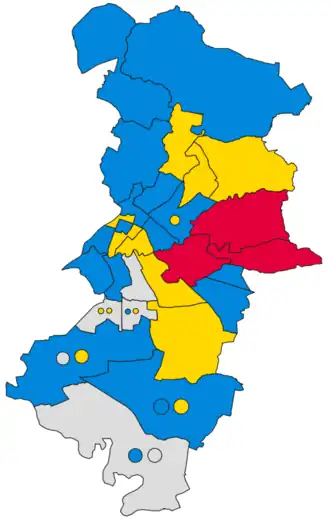 | Conservative Party | 14,882 (33.3%) | 18 (43.9%) | 18 / 41