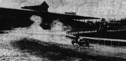 There were just four entries in the five-mile race, which was an open to all categories without any handicapping. Major C. J. S. Miller, in his Renault, was unable to start the race due to a gasoline feed failure. The remaining three cars started on the back straight. Louis Chevrolet led the race from start to finish in the 90-horsepower Fiat, which was significantly more powerfully that his rivals; Guy Vaughan was racing in a 40-horsepower Decauville, while Dan Wurgis had a 32-horsepower Reo Bird.[6][1] By the time they passed the grandstand for the first time, Chevrolet already led by 200 yards (180 m), and he extended that to 440 yards (400 m) on the second lap.[7] Chevrolet completed the race in 4 minutes and 48 seconds. Vaughan was second for most of the race, holding a lead of around 60 yards (55 m) ahead of Wurgis,[7] but as they started the final lap, he dropped away and coasted to a stop on the back straight with a broken gasoline feed pipe.[8] Wurgis finished in second in 5 minutes and 30 seconds.[1]