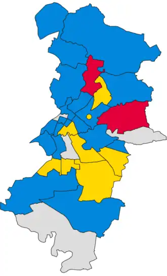 | Labour Party | 8,839 (21.9%) | 2 (6.5%) | 2 / 31