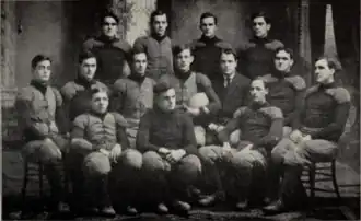A team roster published early in the season had 32 names;[17] after the season, 13 players plus the student team manager were awarded varsity letters:[18]