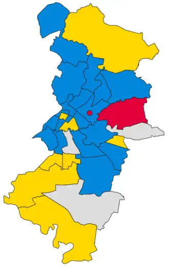 | Labour Party | 15,963 (24.7%) | 2 (6.5%) | 2 / 31