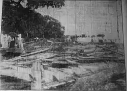 Although the storm killed more than 370 people in the United States, the National Weather Bureau was credited for "invaluable warnings" prior to the hurricane's arrival, saving many lives.[1] Following the hurricane's landfall on September 21, rescue and relief efforts began taking place on September 22 near Houma, Louisiana.[21] By September 25, thousands of dollars worth of supplies had been sent to survivors of the storm.[25] However, more than four days after the passage of the storm, many other areas devastated by the hurricane had yet to receive aid from either the government or United States Army. Congressman Robert F. Broussard sent a telegraph to the war department requesting aid; however, he had not received a response by September 27. Initially, news reports focused on the large loss of life from the storm but, once the lack of aid was noticed, their attention shifted to the hundreds of survivors who were left homeless and in dire need of basic necessities.[26] Within days of the storm's passage, there were fears that the storm ruined the cotton crop in southern Louisiana and would cause a spike in prices. However, in a report released on October 4, 1909, it was stated that the losses were much less than previously thought and as a result, there would be no change in the cotton price.[27] According to a report in 2009, the rice and cotton crops sustained 35% and 20% losses respectively in the wake of the hurricane.[13]