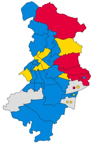 | Party | Votes | Seats | Full Council | |||||||