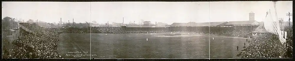 - ^ "1909 World Series Game 1 – Detroit Tigers vs. Pittsburgh Pirates". Retrosheet. Retrieved September 13, 2009.