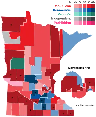 The last election resulted in the Minnesota Republican Party winning a large majority of seats, which they had maintained since the 1859 State Senate Election. The Minnesota Democratic Party was the main competition to the Republicans, although their chances of taking the body were considered slim to none. The major competitions of the election cycle were during the primary season, during which partisans faced off over the issue of the 'county option.' Numerous incumbents lost renomination over the issue.[2]