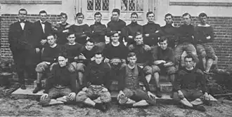 The starting lineup was Swanson (left end), Coarsey (left tackle), Lawler (left guard), Storter (center), Hancock (right guard), Bullock (right tackle), Buie (right end), Shackleford (quarterback), Davis (left halfback), Taylor (right halfback), Tenney (fullback).[11]