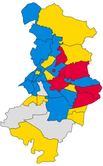 | Labour Party | 17,693 (26.9%) | 6 (17.1%) | 6 / 35