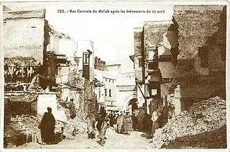 ![]() Damage to the Mellah after French artillery fire in the Intifada of Fes | |
