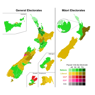 Auckland West, Hawke's Bay, Taumarunui, Wairarapa, Waitaki and Wellington Central were won by the Liberals from Reform