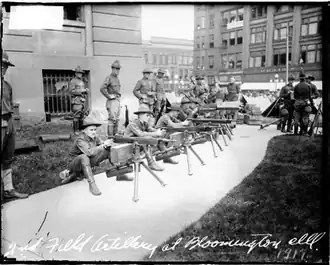 ![]() Illinois National Guard troops surrounding the Bloomington’s courthouse square | |||