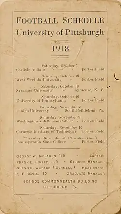 - ^ "Pitt Football Plans for Coming Season are now Complete". The Gazette Times. July 14, 1918. p. 19 – via Newspapers.com.