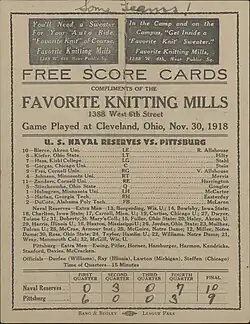 - ^ Keck, Harry (December 1, 1918). "Panthers Beaten By Navy Reserves in Game Featured by Many Disputes". The Pittsburgh Sunday Post. p. 22 – via Newspapers.com.