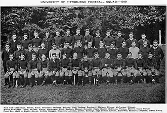 The 1919 Pittsburgh Panthers football team was an American football team that represented the University of Pittsburgh as an independent during the 1919 college football season. In its fifth season under head coach Pop Warner, the team compiled a 6–2–1 record and outscored all opponents by a total of 119 to 66.[1][2] The team played its home games at Forbes Field in Pittsburgh.