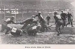 Center Herb Stein was elected Captain for the 1920 season on the third ballot at the annual football banquet. Tom Davies was the runner-up.[85] The following players received the varsity "P" for the 1919 season: James DeHart, Tom Davies, Andy Hastings, James Morrow, Fred Ewing, Frank Eckert, Harvey Harman, James Bond, John McLean, Alex Meanor, Herb Stein, John Laughran, G. Herb McCracken, Thomas Hamberger, Abe Breman, Cliff Brown, John McCrory, W. J. Thomas, Oscar Kratzert, Alvar Ginn, Gus Aschman, Lou Mervis and W. J. Foster.[86]