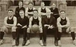On-campus Ryan Gymnasium, where the Hoyas had played their home games since the 1914–15 season, had no seating, accommodating fans on a standing-room only-basis on an indoor track above the court. This precluded the accommodation of significant crowds, providing the self-sustaining Basketball Association with little revenue with which to fund the team's travel expenses, and Georgetown averaged no more than three road games a year from the 1918-19 season through the 1926–27 season in order to keep travel to a minimum.[2][3] The 1920–21 team's only road trip outside of Washington was to play schools in Pennsylvania at the end of the season.