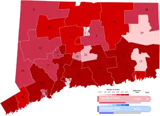 Results of the 1920 Connecticut Senate election.[3] Party shading denotes winner of Senate seat.