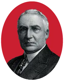 As the balloting continued the next day, Wood, Lowden, and Johnson remained in the lead, and party leaders worked to find a candidate acceptable to both the progressive and conservative wings of the party.[8] Conservatives strongly opposed Wood, while Lowden was opposed by the progressive wing of the party.[8] Harding emerged as a moderately conservative candidate acceptable to the progressive wing of the party, and as the convention remained deadlocked, Harding emerged as a strong compromise candidate.[8] After the eighth ballot, the convention recessed. During the recess, Harding's managers lobbied Lowden's supporters and others to support Harding.[8] Harding was also helped by the fact that the Democrats might nominate James M. Cox of Ohio, and Republicans did not want to give the Democrats a home state advantage in electorally critical Ohio.[9]