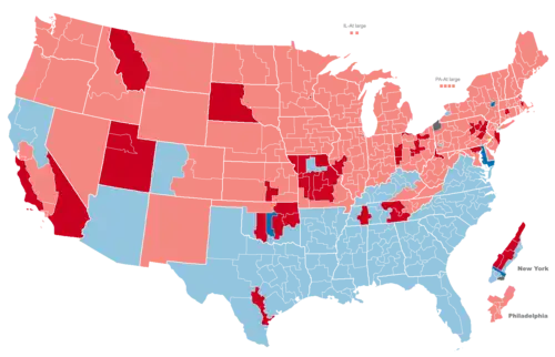 | 1920 presidential election results. Red denotes states won by Harding, blue denotes states won by Cox. Numbers indicate the electoral votes won by each candidate. | |