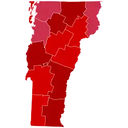 Harding swept every county in Vermont by landslide margins, taking more than sixty percent of the vote in all fourteen. Harding broke seventy percent of the vote in eleven counties, and even broke eighty percent in five.