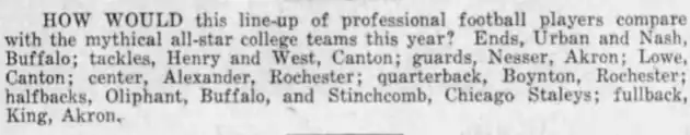 - ^ "1921 APFA All-Pros". pro-football-reference.com. Sports Reference LLC. Retrieved July 24, 2014.