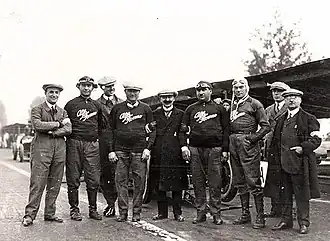 The second San Sebastián Grand Prix got a strong international field with Bugatti, Delage and Rolland-Pilain from France. They were up against Sunbeam, Mercedes and Diatto from Italy. In the absence of Alfa Romeo, French hopes were high for victory, but once again they were thwarted, this time by Sunbeam. At the start it was Masetti in the Mercedes who led until he retired with engine problems. Segrave narrowly won from Costantini's Bugatti and André Morel in a Delage.[8] There were several crashes in the race, but the most serious incident was with the Sunbeam of Kenelm Lee Guinness. On lap 11 he hit a rut in a corner that threw him into the roadside banking which then rolled the car three times on the wet track. His mechanic, Tom Barrett, was killed instantly and Guinness suffered severe head and arm injuries that curtailed his racing career.[32] The race was also significant for being where Segrave pioneered the wearing of a crash helmet in racing.[33]