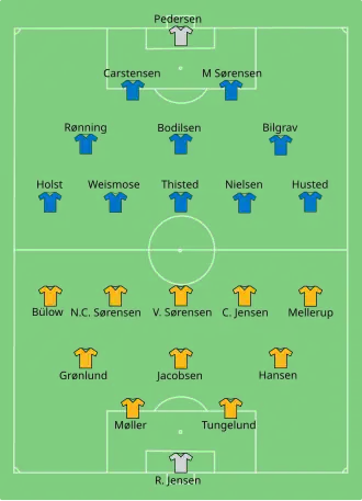 - ^ a b Andreasen, Per (1996). "De store kampe i VFF's historie 2 : Et kvalitetsmæssigt højdepunkt i jysk fodbolds historie". Jubilæumsbogen - Viborg FF 100 år : Viborg Fodsports Forening 1896-1996 (in Danish). Viborg Fodsports Forening. p. 16.