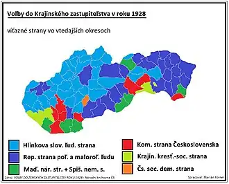 Provincial elections were held in Slovak Province on 2 December 1928. The elections were marked by a drop in support for the Slovak People's Party,[1] whilst the Republican Party of Farmers and Peasants emerged as the largest party in the Assembly of Slovakia.[2]