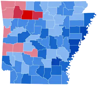 | Arkansas | 1,491 | 58.59% | 1,046 | 41.10% | 8 | 0.31% | 445 | 17.49% | 2,545 |