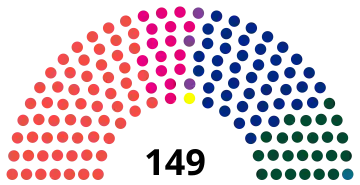 All 149 seats in the Folketing 75 seats needed for a majority |