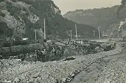 As a result of the storm, the lower reaches of the Water of Leith in Dunedin have now been contained within concrete channels, and the flow is controlled by several small weirs, notably just to the north of Woodhaugh Gardens and at the George Street bridge.[5][6] The river's concrete channels close to its mouth were also doubled, creating a flood spillway channel. Further work to reduce the Leith's flooding risk was undertaken in the 1950s and 1960s and since the mid-1990s. There has been extensive flood protection work in progress since 2013,[7][5] which is still ongoing, most recently resulting in the extensive closure of the Dundas St bridge.[8][9]