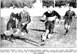 On March 26 the Papakura Rugby League club was formed with 60 players enrolling.[19] They applied to the Papakura Town Board for use of the reserve at Papakura. This was granted as the entire club had switched over from Rugby Union meaning they had no competition for the field. The council said that if a representative rugby game was being played on the field then the league team could use Prince Edward Park (which later became their home ground and remains so to this day).[20] On Saturday, 18 April they played a practice match with Mount Wellington at Papakura.[21] The match was won by Mount Wellington by 8 points to 5. Papakura's points came from an unconverted try to Johnstone, and I. Wilson kicked a penalty goal.[22] They held their first social on the evening of Wednesday 22 April at the Paragon Theatre.[23]