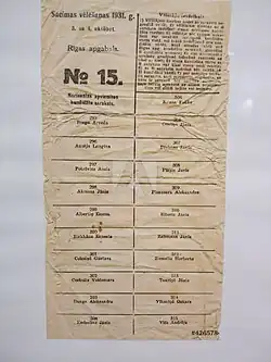 Parliamentary elections were held in Latvia on 3 and 4 October 1931.[1] The Latvian Social Democratic Workers' Party remained the largest party, winning 21 of the 100 seats.[2] They were the last elections held under the Constitution of Latvia before the 1934 coup d'état and the last competitive elections held under Latvian law until 1993.