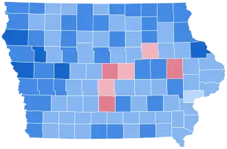 | Iowa | 4,376 | 58.35% | 2,628 | 35.04% | 495 | 6.60% | 1,748 | 23.31% | 7,499 |
