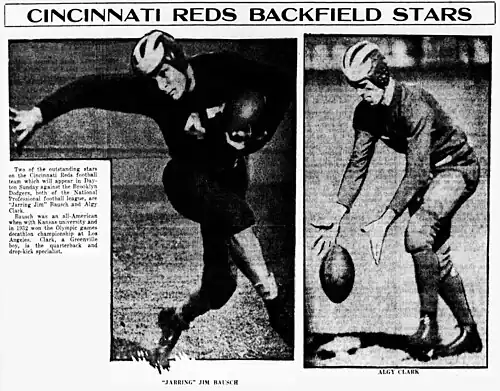 - ^ a b c "Grid Roster of Reds Being Filled: Seventeen Players Signed by New Pro Team — To Begin Practice September 3," Cincinnati Enquirer, Aug. 13, 1933, p. 32.