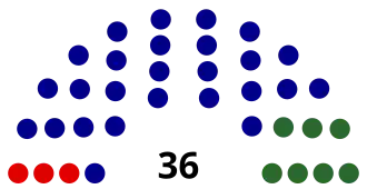 | Party | Votes | % | Swing | Seats won | Seats held | Change | |