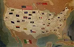 1935 map of the United States showing state flags, painted by Ethel Parsons for the Albany post office
