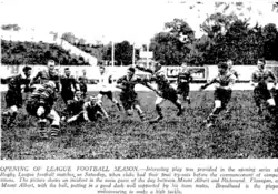 On April 18 a special round of matches were played to open the season. The proceeds were divided between the clubs and a benefit fund for Jim Laird, the Marist international player who was injured in a New Zealand match late in the 1935 season. In the match between Richmond and Mount Albert, a Richmond forward was ordered off (though the newspapers did not state who the player was) and was suspended for four weeks.[35] There were four matches played at Carlaw Park. The Manukau senior side had yet to be admitted at this point and so Devonport played the Pukemiro team from the South Auckland league. The same weekend Papakura defeated Point Chevalier in a pre-season match at Papakura by 38 points to 5.[36] Former rugby representative player, Reginald Haslam was on debut for Marist after switching codes. He would represent Auckland in a match later in the season.