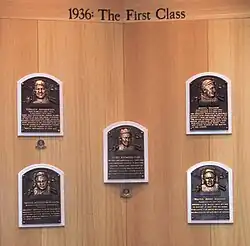 The first elections to select inductees to the Baseball Hall of Fame were held in 1936. Members of the Baseball Writers' Association of America (BBWAA) were given authority to select individuals from the 20th century; while a special Veterans Committee, made up of individuals with greater familiarity with the 19th century game, were polled to select deserving individuals from that era. The intent was for 15 honorees to be selected before the 1939 ceremonies – 10 from the 20th century and 5 from the 19th; additional players from both eras would be selected in later years.[1] Voters were given free rein to decide for themselves in which group a candidate belonged, with neither group knowing the outcome of the other election; some candidates had their vote split between the elections as a result – Cy Young, the pitcher with the most wins in Major League history, finished 8th in the BBWAA vote and 4th in the Veterans vote. In addition, there was no prohibition on voting for active players, a number of whom received votes. Individuals who had been banned from baseball – such as Shoeless Joe Jackson and Hal Chase – were also not formally excluded, though few voters chose to include them on ballots.